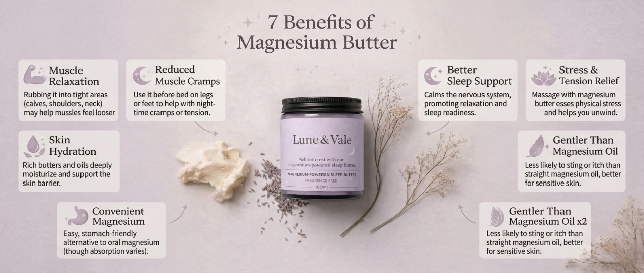 Experience the calming embrace of our magnesium butter, crafted to promote relaxation and enhance your sleep routine.
